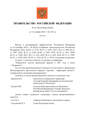 Соответствующее распоряжение подписал Председатель Правительства Михаил Мишустин 12 ноября 2025 года.
