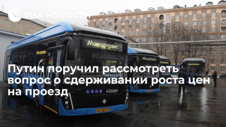 Президент РФ Владимир Путин поручил правительству рассмотреть вопрос о сдерживании роста стоимости проезда на общественном транспорте, доложить о результатах об этом нужно до 15 июля, говорится в сообщении на сайте Кремля. "Правительству Российской Федерации совместно с комиссиями государственного совета Российской Федерации рассмотреть вопросы … о сдерживании роста стоимости проезда на транспорте общего пользования в городском, пригородном и междугородном сообщении", - говорится в перечне поручений президента.