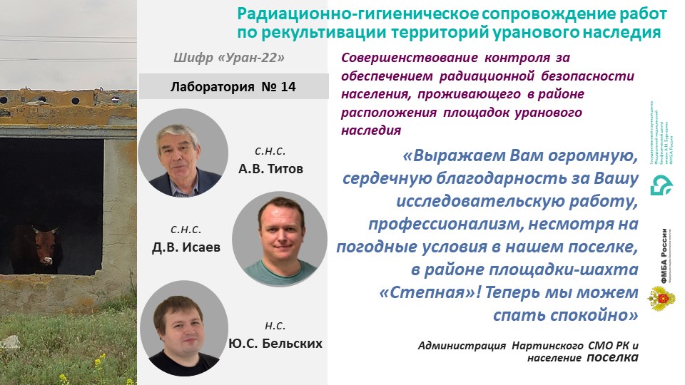 Администрация сельского поселения Республики Калмыкия выразила благодарность ученым ФМБА России за исследовательскую работу на объектах уранового наследия