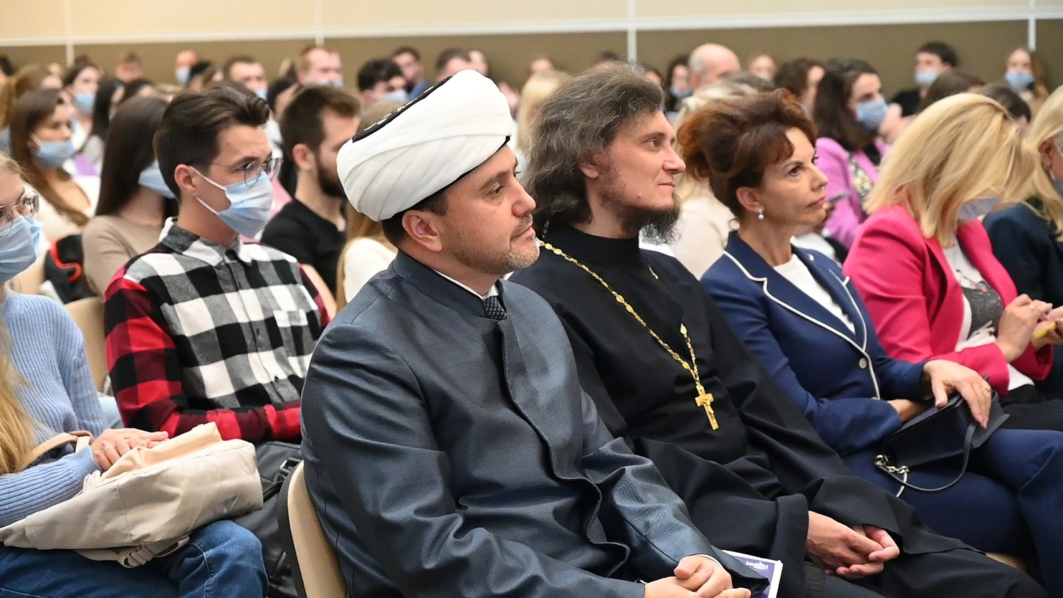 С духовной напутственной речью выступили протоиерей Валерий Буерин, священник Храмового корпуса во имя святителя Луки Крымского при ФМБЦ им. Бурназяна, и Рушан Аббясов, заместитель председателя Духовного управления мусульман РФ.