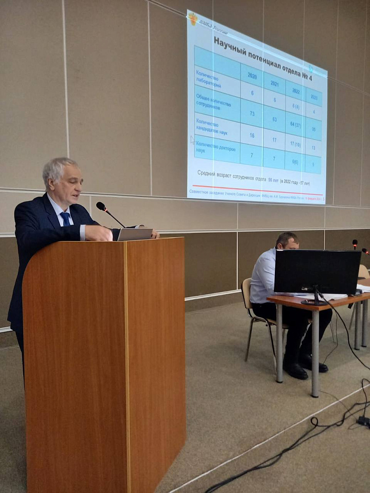 14 -15 февраля 2024г. состоялись совместные заседания Дирекции и Ученого совета ФМБЦ им.А.И. Бурназяна. В отчетах подразделений о выполнении научно-исследовательских и научно-практических работ за 2023г. отражен значимый вклад ученых Центра в развитие науки и практики по вопросам радиационной безопасности, методической базы, достижения в области радиационной эпидемиологии, спортивной медицины, радиационных технологий медицинского назначения. Первый заместитель генерального директора Андрей Бушманов и заместитель генерального директора Наталия Шандала в заключении заседания отметили наиболее весомые достижения ученых Центра.