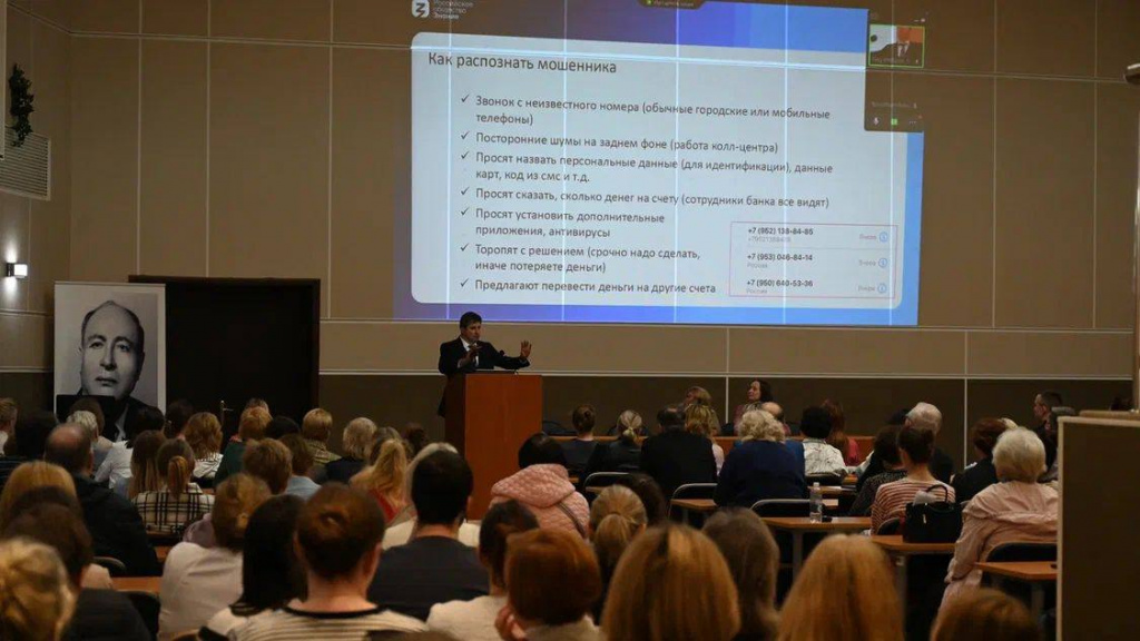 Участникам лекции рассказали об основных методах мошеннических схем: оформление займов на украденные персональные данные, манипуляции через звонки от лжесотрудников банков или генерированных искусственным интеллектом голосовых сообщений.
