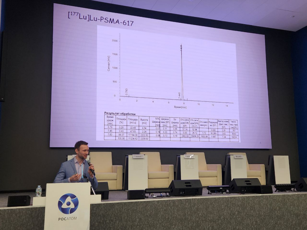 О развитии радиофармацевтических технологий в лечении онкологических заболеваний и других тяжелых патологий рассказал Антон Ларенков, возглавляющий Отдел радиационных технологий медицинского назначения в ФМБЦ им.А.И. Бурназяна ФМБА России. На форуме он выступил с докладом о применении альтернативных условий синтеза для повышения конверсии и радиохимической чистоты препаратов на основе лютеция-177 и других радионуклидов.