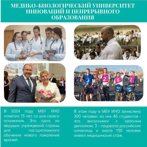 Кроме того, круглую дату отметил Медико-биологический университет инноваций и непрерывного образования. Это одно из ведущих учреждений страны постдипломного образования, которое демонстрирует стабильное развитие. Сегодня подготовка кадров ведется по 73 медицинским специальностям ординатуры и 26 научным специальностям аспирантуры.