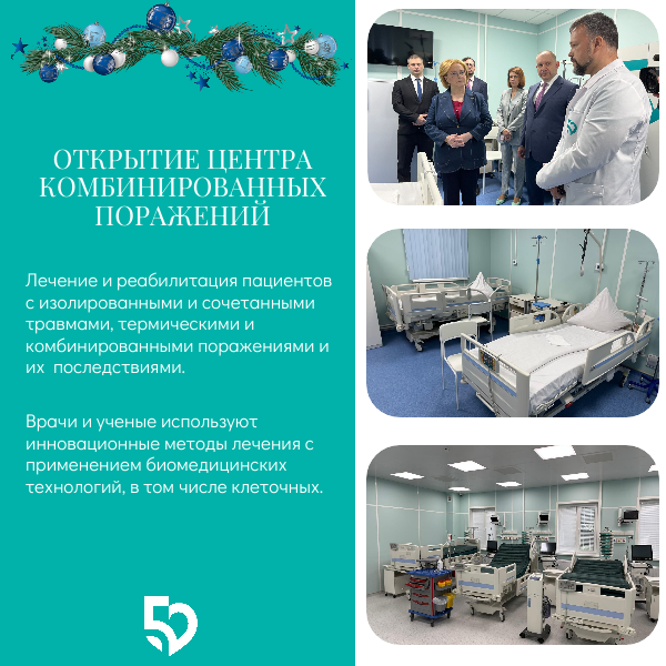Уходящий год был насыщенным и полон значимых, исторических событий для нашего учреждения. Учеными завершена разработка инновационного продукта для решения задач аварийной дозиметрии и радиационно-гигиеническое сопровождение работ по рекультивации бывших урановых объектов Центральной Азии. Руководитель ФМБА России Вероника Скворцова открыла Центр комбинированных поражений, где занимаются лечением и реабилитацией пациентов с изолированными и сочетанными травмами, термическими и комбинированными поражениями и их последствиями. Для пациентов открыл свои двери и Центр амбулаторной онкологической помощи с дневным стационаром.
