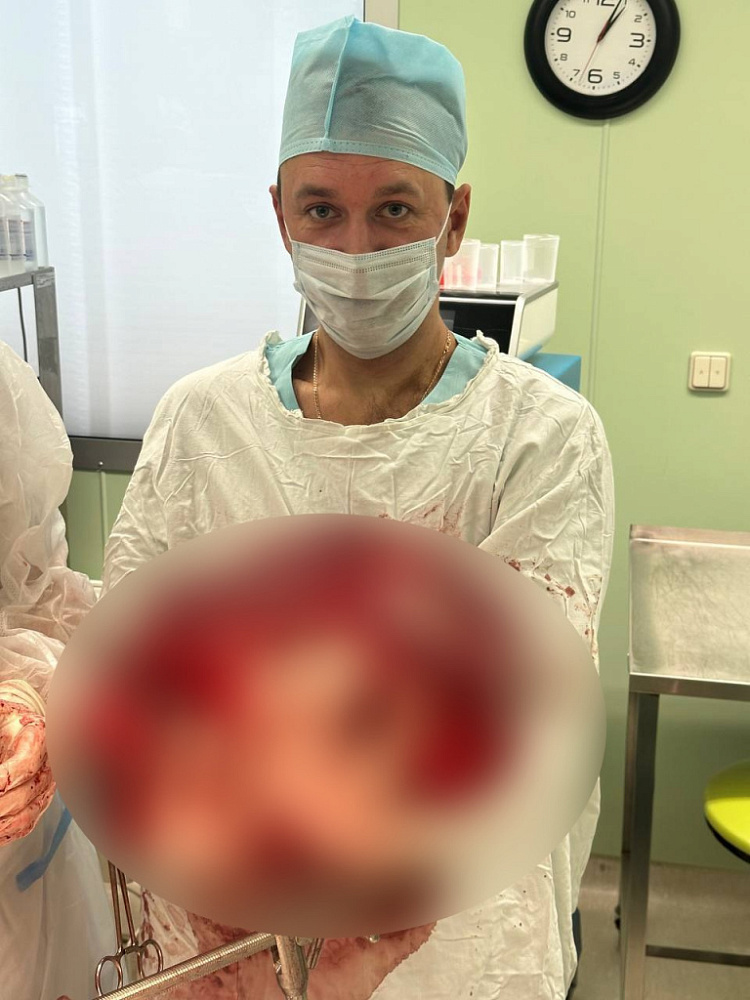В августе 2024 года с увеличением живота началась одышка и проблемы с пищеварением. Наталье Валентиновне пришлось снова проходить обследования, по результатам которых выявили гигантское образование размером 30*30*20см, которое контактировало практически со всеми органами брюшной полости, малого таза и поразило крупные магистральные сосуды. Омские врачи в срочном порядке направили женщину в наш Центр в хирургическое отделение №2.