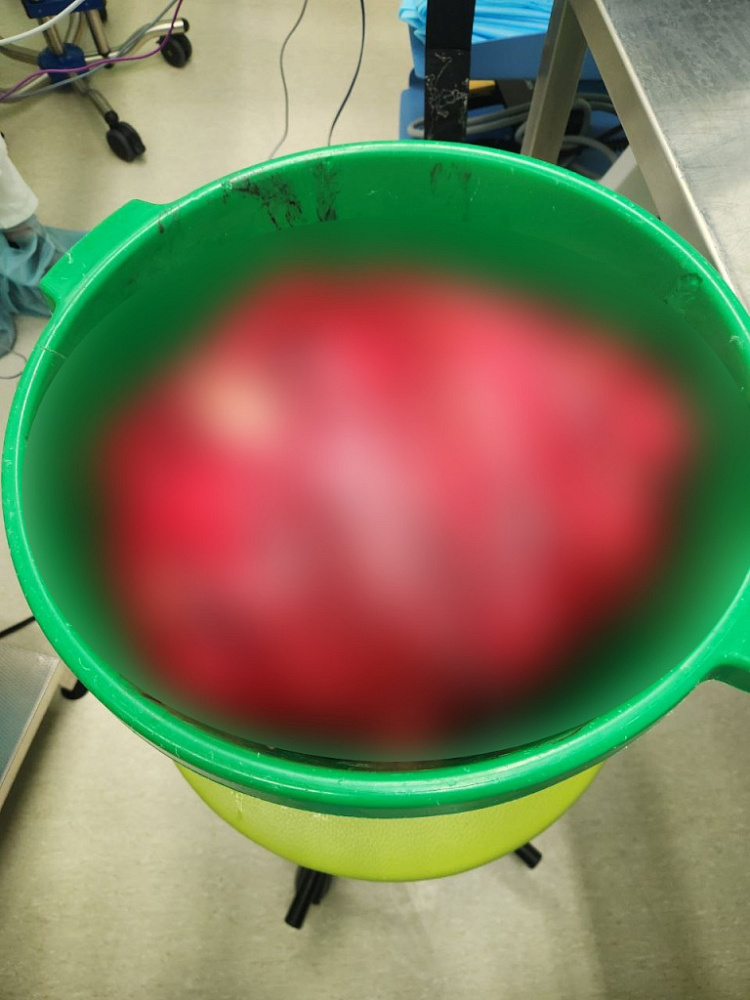 Операция длилась более 7 часов, во время которой был выполнен большой объем хирургического вмешательства: удалили злокачественное образование, провели резекцию пораженной опухолью нисходящей ободочной кишки, тонкой кишки, подвздошной вены с аутопластикой, а также удалили левую почку и левые придатки.