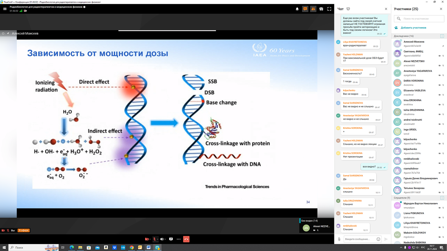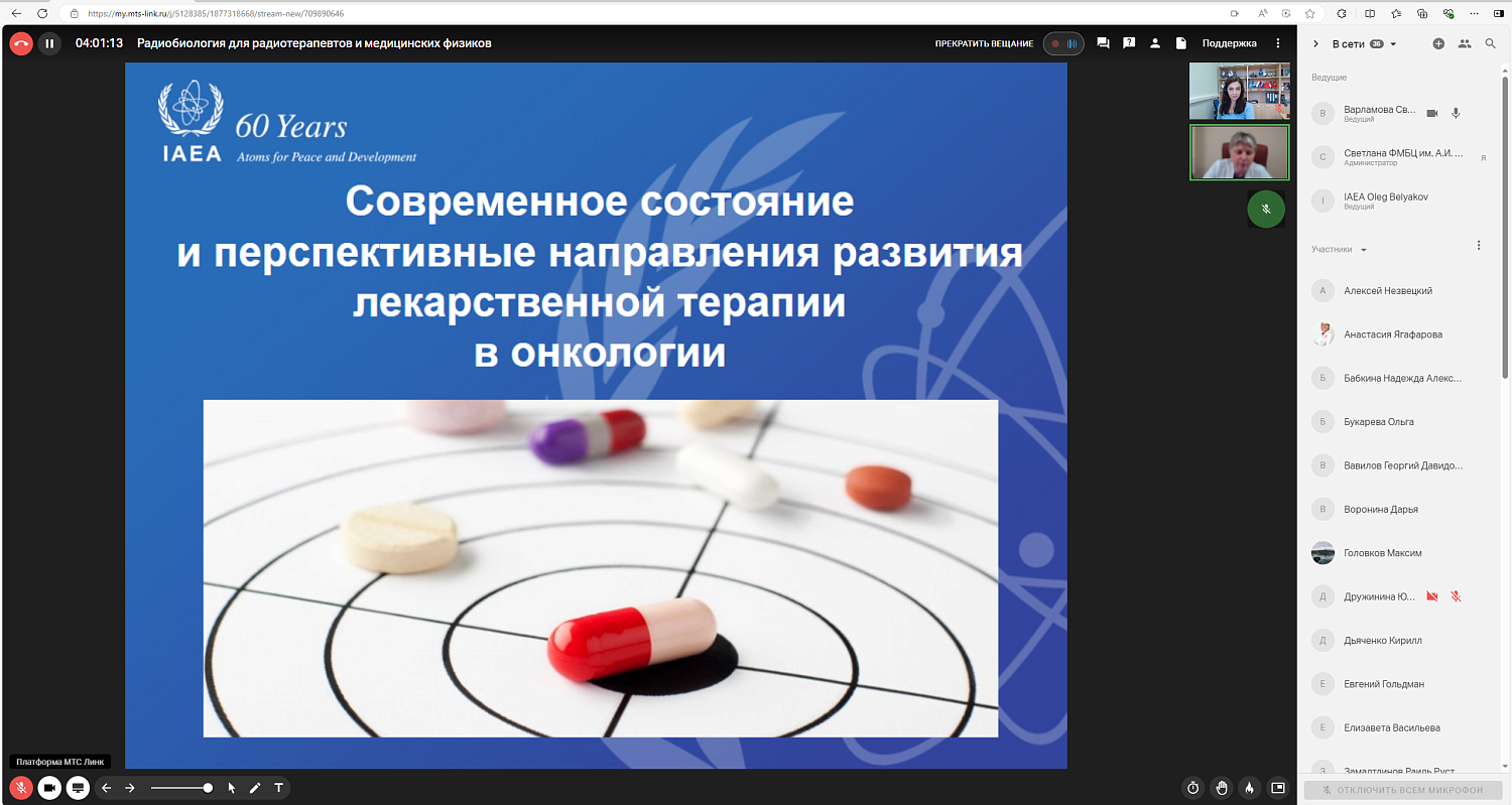 В период с 18 по 29 ноября 2024 года на базе ФГБУ ГНЦ ФМБЦ им. А.И. Бурназяна ФМБА России в онлайн-формате прошел Региональный учебный курс МАГАТЭ по радиобиологии для радиотерапевтов и медицинских в рамках реализации Программы действий Международного агентства по атомной энергии по лечению рака «Лучи надежды».