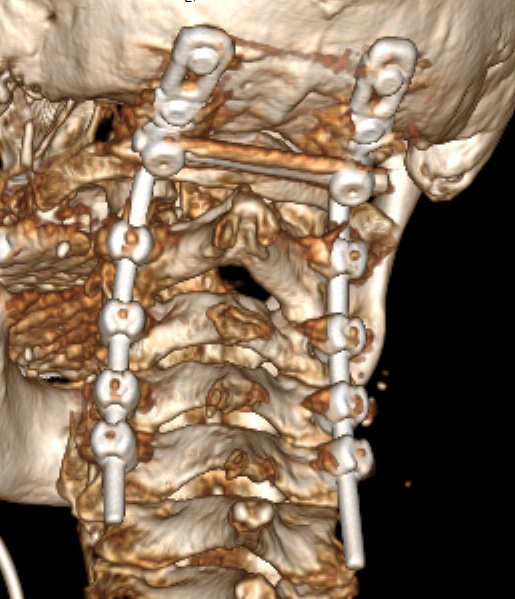 Врачами-нейрохирургами было принято решение о необходимости хирургического лечения. Предстояло удалить поврежденный позвонок и осуществить фиксацию головы и шейного отдела позвоночника.