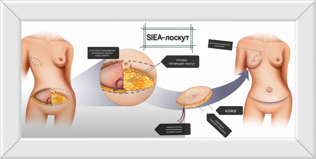 SIEA-лоскут имеет более мелкие сосуды, которые подвергают лоскут высокому риску ишемии и некроза, но, благодаря разработанным в нашем центре и запатентованным методикам его перемещения, нашим специалистам удалось свести к минимуму все возможные риски.