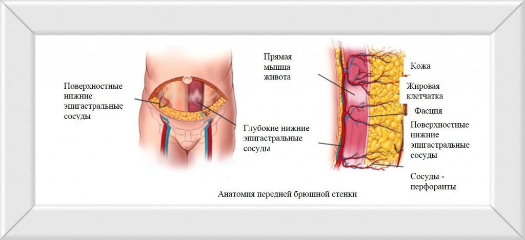 Однако в первом случае лоскут состоит из кожи, жировой клетчатки и прямой мышцы живота, благодаря которой в дальнейшем лоскут получает прямое кровоснабжение. При всех своих плюсах данная операция является достаточно травматичной, объёмной и повышает риск возникновения грыжи в брюшной зоне вследствие ослабления передней брюшной стенки.