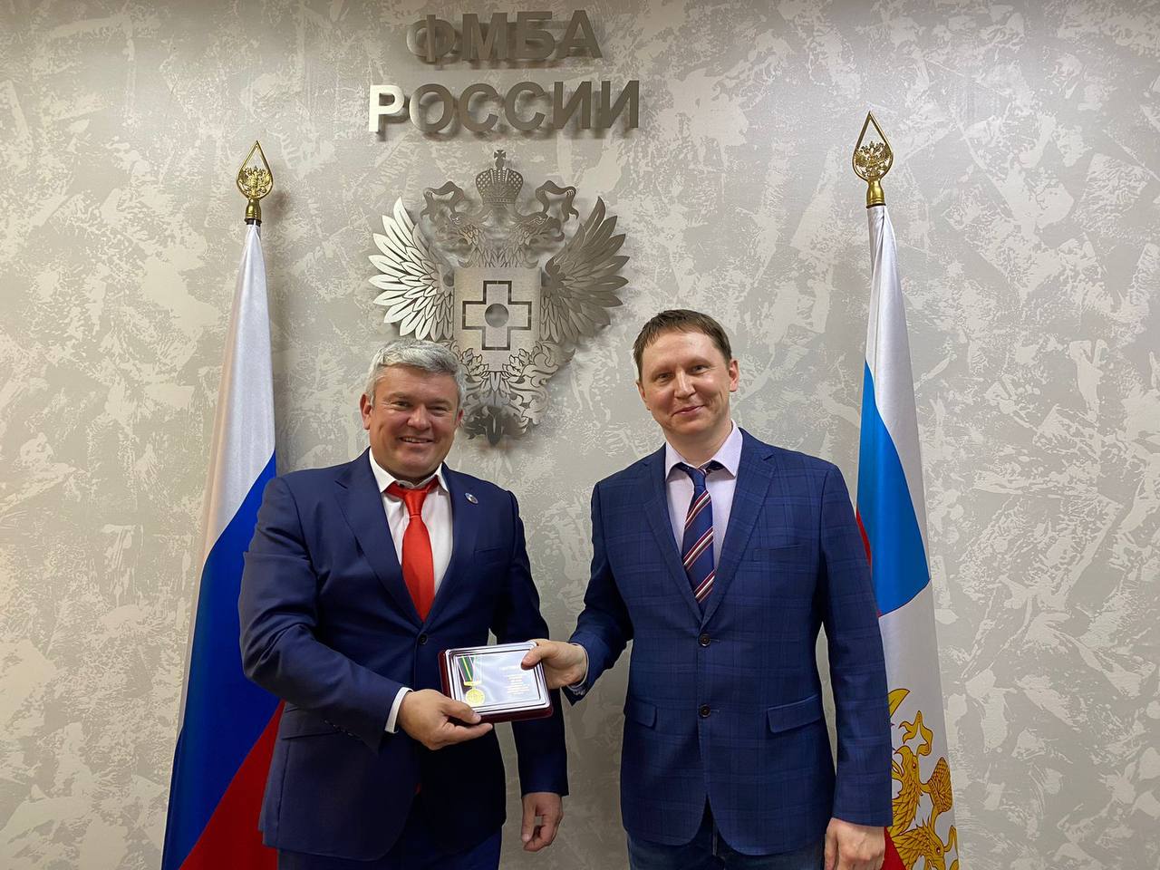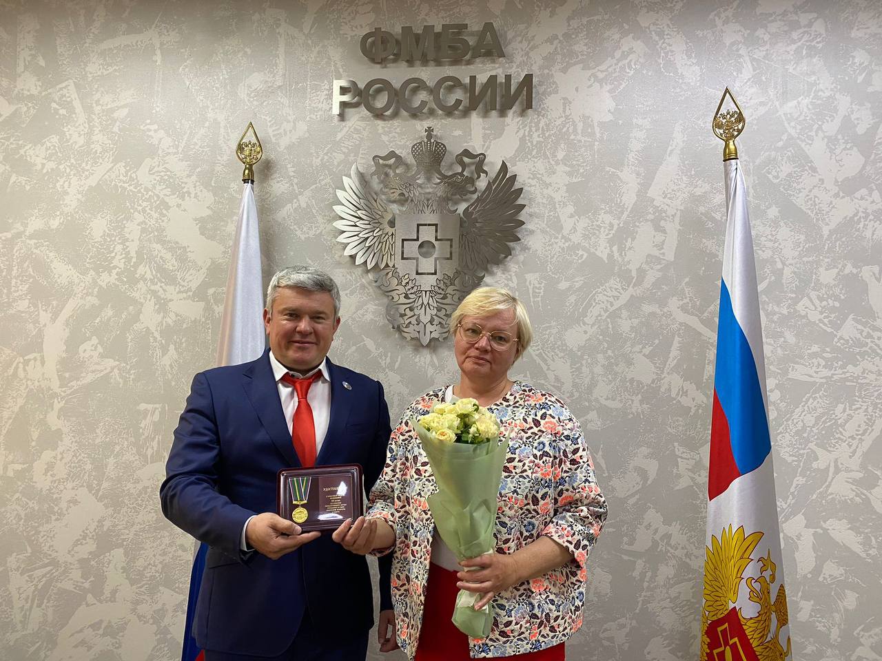 Сразу двум сотрудникам нашего Центра вручили юбилейную медаль, посвященную 100-летию образования государственного органа управления в сфере физической культуры и спорта. Награду вручал начальник Управления спортивной медицины и цифровизации ФМБА России Игорь Выходец.