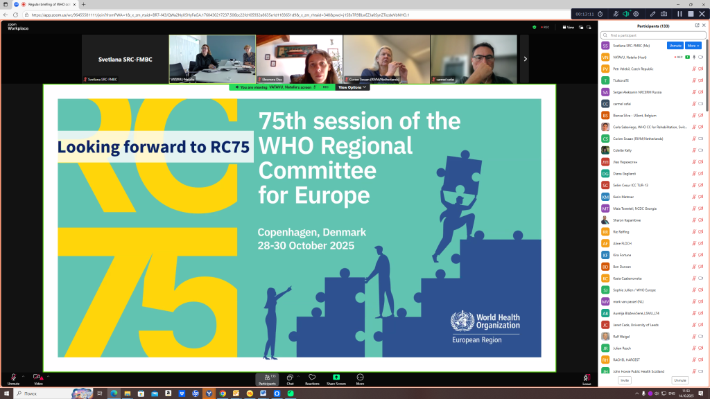 С приветственным словом выступил технический директор Европейского бюро ВОЗ Ханс Клюге. Далее согласно повестке совещания выступили представители СЦ ВОЗ различных европейских стран с заявленными докладами. Основной целью мероприятие было привлечение внимания СЦ ВОЗ к проблеме здоровья, физического и ментального, детей и подростков в мире. Было выдвинуто предложение о создании сети СЦ ВОЗ для обучения и образования.
