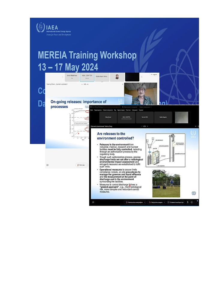 Специалисты Центра приняли участие в учебном семинаре-практикуме для участников программы «Методы оценки радиологического и экологического воздействия» (MEREIA), который проходил в виртуальном формате с 13 по 17 мая 2024 года по программе технического сотрудничества МАГАТЭ.