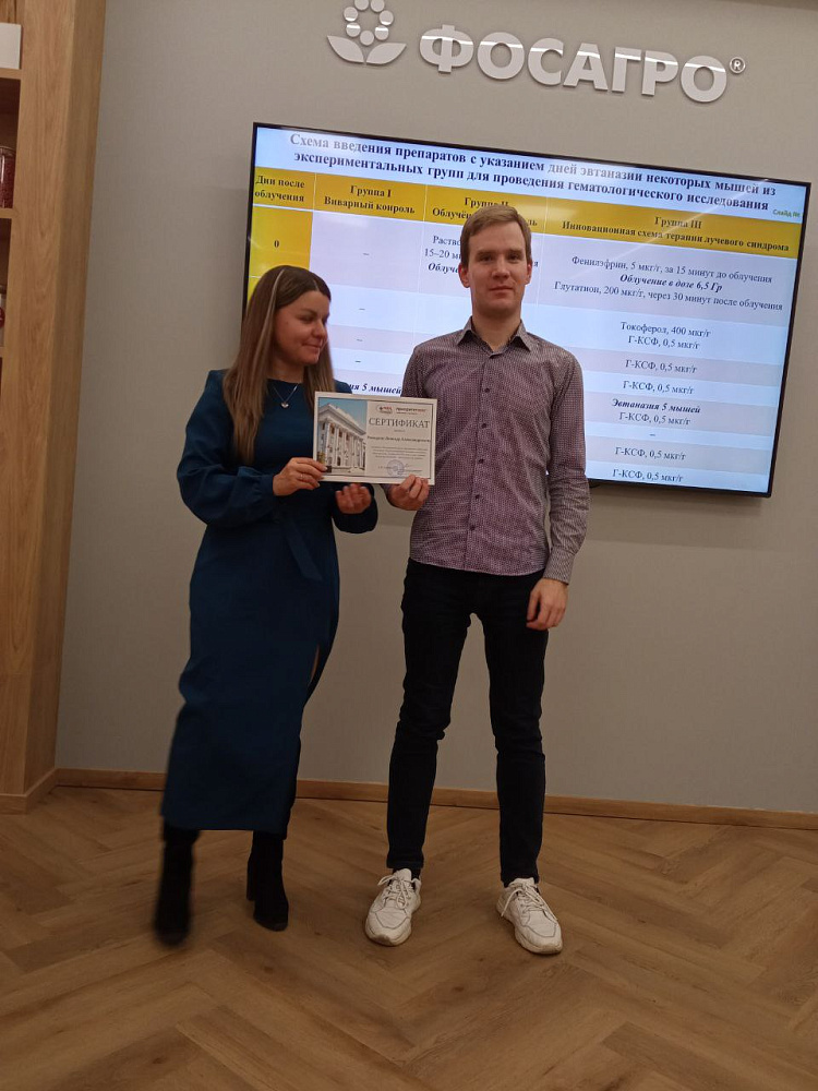 Также на конференции прозвучали доклады сотрудников и студентов ФГБОУ ВО МГАВМиБ – МВА имени К.И. Скрябина, выполняющих научные работы под руководством Л.А. Ромодина. Данные сообщения были также посвящены результатам работы в рамках проекта РНФ № 23-24-00383 (https://rscf.ru/project/23-24-00383/) и в них докладчики ознакомили аудиторию с результатами некоторых экспериментов по изучению эффективности ряда терапевтических схем лечения лучевой болезни, а также с результатами исследования гистологических изменений в тканях организма под действием ионизирующего излучения.