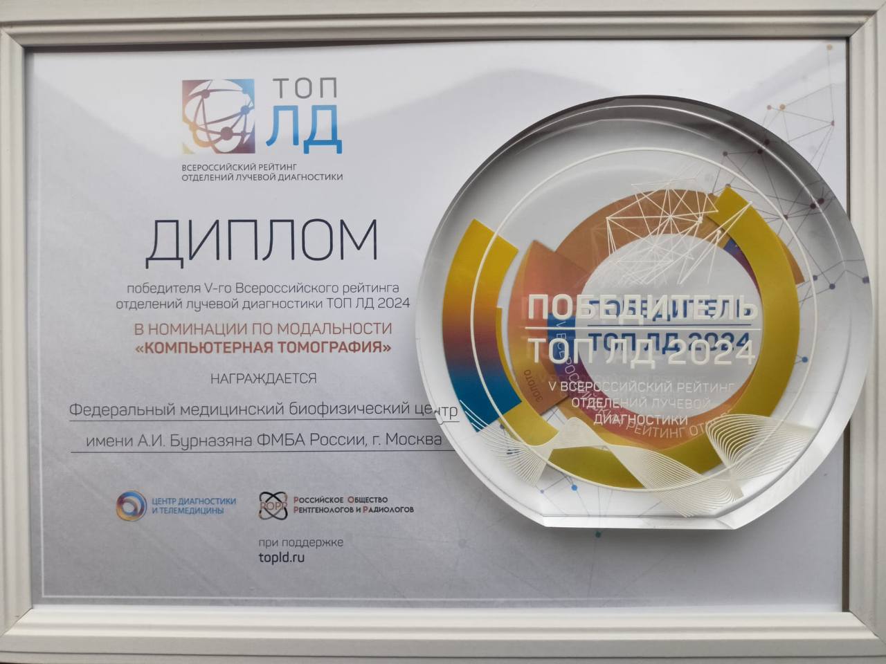 В числе финалистов оказались учреждения из Ханты-Мансийска, Тюмени, Астрахани, Санкт-Петербурга и Москвы. Центр лучевой диагностики ФМБЦ им. А.И. Бурназяна ФМБА России получил две награды: победитель в категории «Магнитно-резонансная томография» и в категории «Компьютерная томография». Награду вручили заведующим отделениям Елене Маткевич и Андрею Башкову.