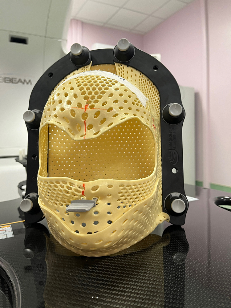 В ФМБЦ им.А.И. Бурназяна пациенты могут пройти стереотаксическое облучение – это терапия, позволяющая высокими кратковременными дозами радиоактивного излучения уничтожить небольшие опухоли в самых труднодоступных местах, в том числе в глубинных слоях головного мозга.