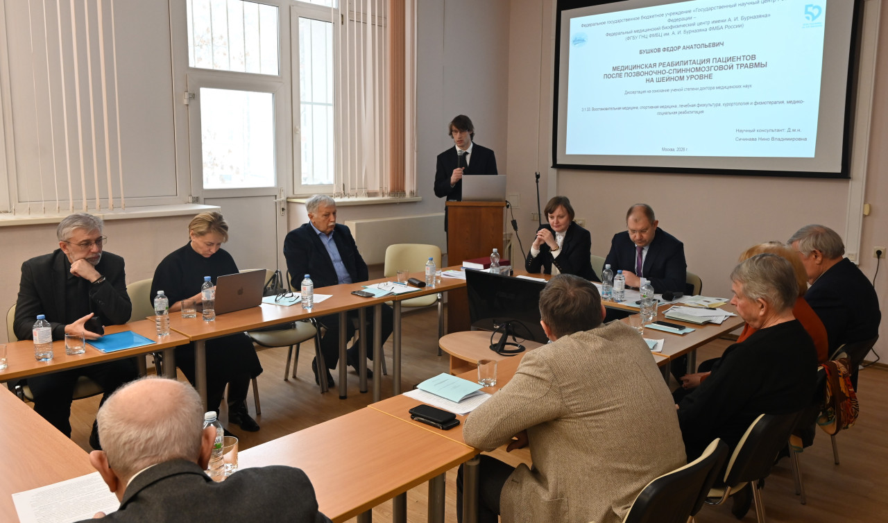 12 февраля 2026 года состоялась успешная защита диссертаций в диссертационном совете 68.1.003.04 действующего на базе ФГБУ ГНЦ ФМБЦ им. А.И. Бурназяна ФМБА России по специальности 3.1.33. «Восстановительная медицина, спортивная медицина, лечебная физкультура, курортология и физиотерапия, медико-социальная реабилитация».