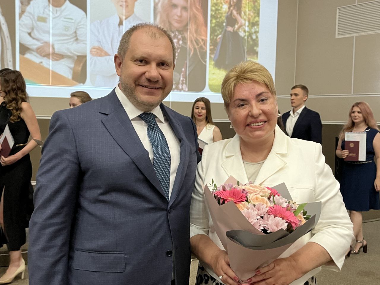 С напутственным словом к молодым коллегам обратился генеральный директор ФМБЦ им. А.И. Бурназяна Александр Самойлов. Он поздравил ординаторов с завершением постдипломного образования и поблагодарил профессорско-преподавательский состав за проведенную методическую работу с будущими врачами: «Диплом государственного научного центра – это наш бренд. И ваши знания – это наша репутация. Поэтому мы очень рады за вас, мы гордимся и желаем, чтобы вы шли под флагом Центра имени Аветика Игнатьевича Бурназяна и, конечно же, не отрывались от альма-матер и возвращались к нам на циклы подготовки».