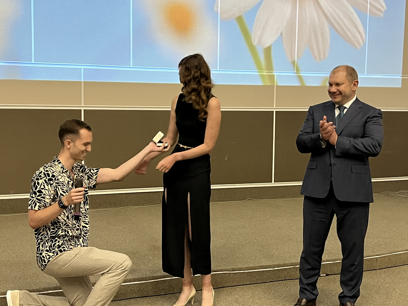Подтверждением этих слов стал еще один, не менее торжественный момент. Выпускник, молодой врач-хирург Руслан Царгасов сделал предложение руки и сердца своей избраннице, тоже ординатору – неврологу Екатерине Есюниной. Невеста ответила согласием. Сейчас пара планирует узаконить свои отношения.