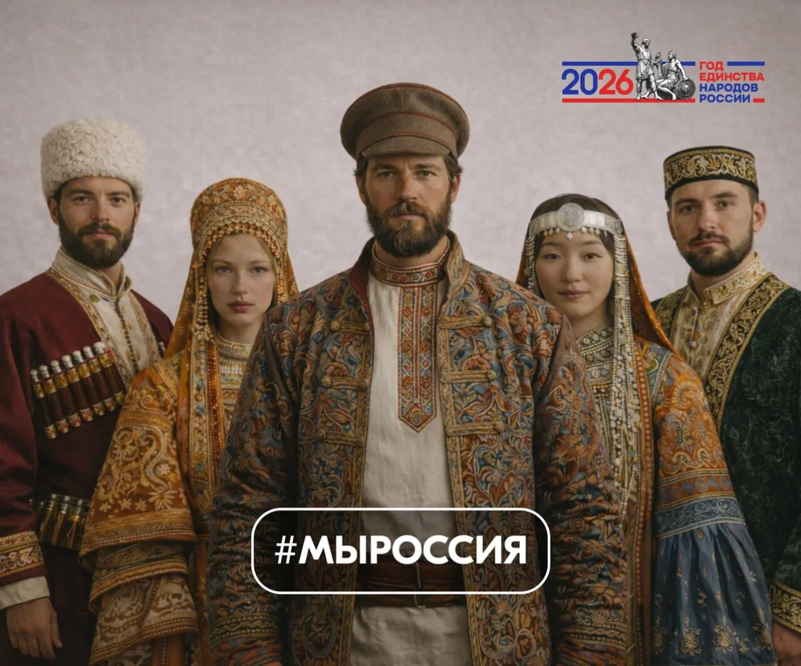 2026 год объявлен Годом единства народов России. Наша страна объединяет множество народов. В общих делах и взаимной поддержке, в уважении к традициям каждого народа и в гордости за единую историю мы доказываем: мы — одна семья. Мы — Россия!