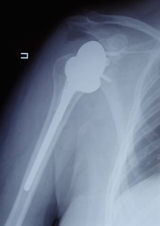 Чтобы восстановить функцию плечевого сустава, врачи травматолого-ортопедического отделения ФМБЦ им. А.И. Бурназяна ФМБА России впервые выполнили реверсивное эндопротезирование плеча. В ходе операции хирурги удалили поражённую головку плечевой кости, на место которой поместили реверсивный эндопротез – плечевой компонент протеза вогнутый, а со стороны лопатки выполнен в форме сферы. Такой тип протеза позволяет восстановить функцию сустава при дефиците мышц вращательной манжеты плеча и показывает лучшие результаты, чем другие эндопротезы.