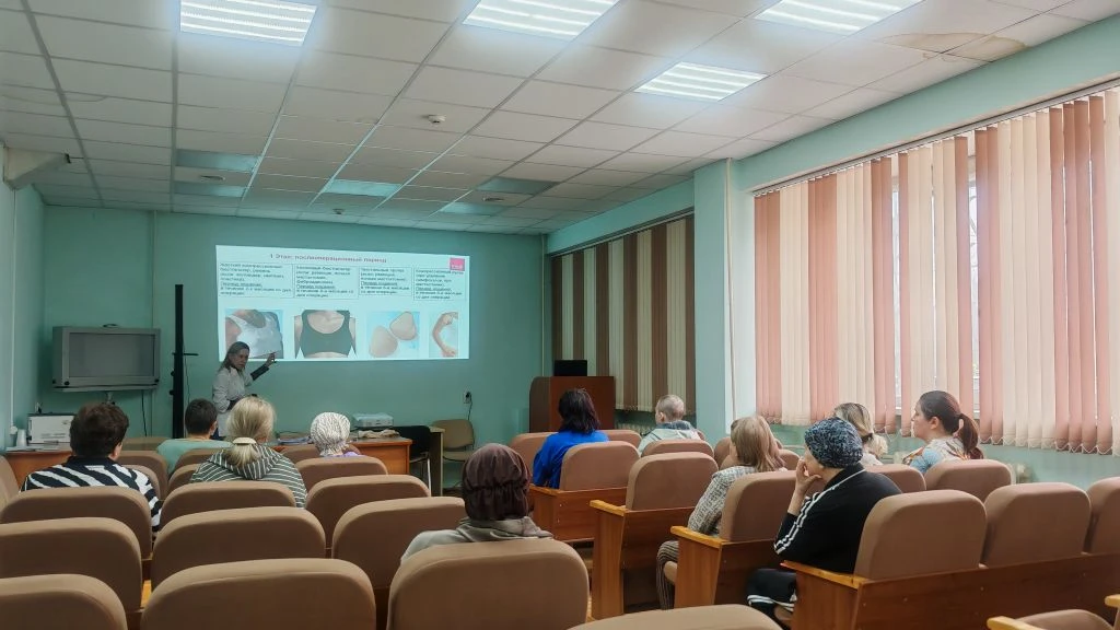 В онкохирургическом отделении ГНЦ ФМБЦ им.А.И.Бурназяна ФМБА России прошла информационная встреча для пациенток, посвящённая восстановлению после операций на молочной железе. Медицинский волонтёр Тайдакова Татьяна Викторовна — медицинская сестра, специалист по подбору средств реабилитации после операций на молочной железе, включая случаи удаления лимфатических узлов и установки имплантов — рассказала о ключевых аспектах послеоперационного периода и возвращения к привычной жизни.