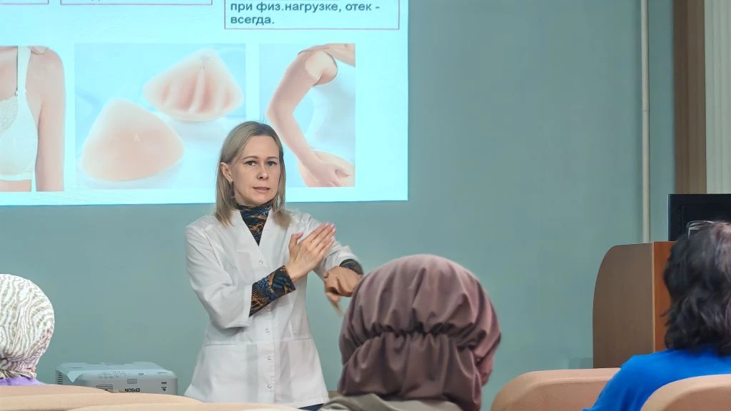 Отдельно обсудили средства реабилитации — экзопротезы, особенности их подбора, а также необходимость применения компрессионного рукава после удаления лимфатических узлов для предотвращения лимфостаза. Важной частью встречи стали рекомендации по восстановительной гимнастике, которая помогает вернуть подвижность, улучшить самочувствие и постепенно вернуться к активной жизни.