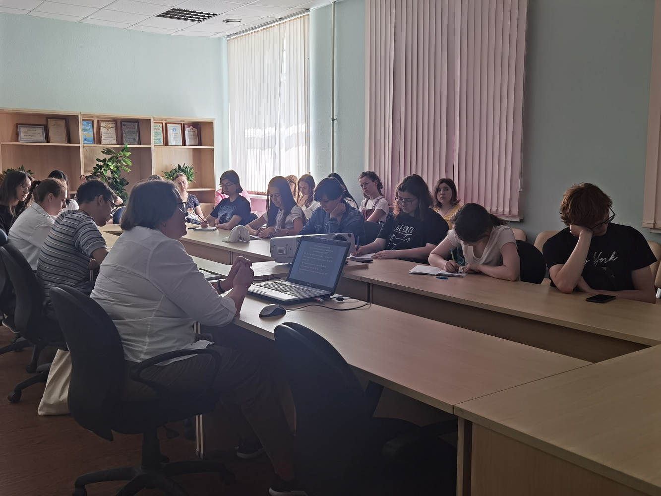Заведующий лабораторией, кандидат технических наук Владимир Наумович Яценко показал ребятам современное оборудование для определения доз внешнего и внутреннего облучения и рассказал об особенностях дозиметрических, радиометрических, спектрометрических исследований и их эволюции с советского периода до наших дней.