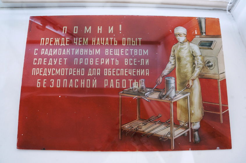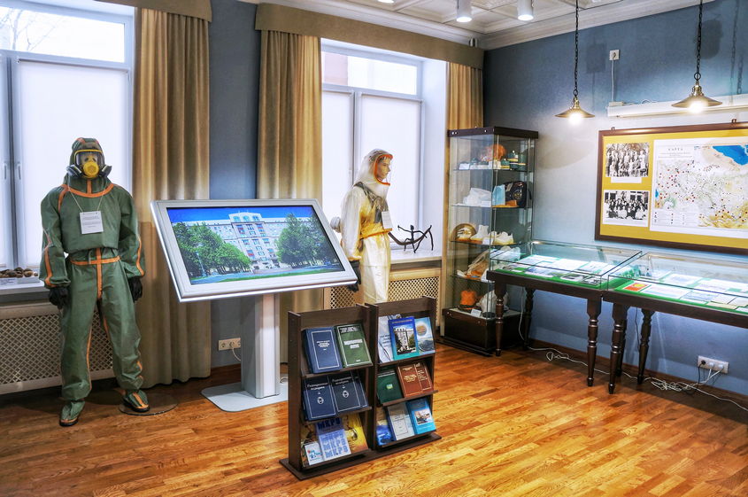 В первом зале представлены средства индивидуальной защиты работников атомной промышленности, первые дозиметры, разработанные в Институте.